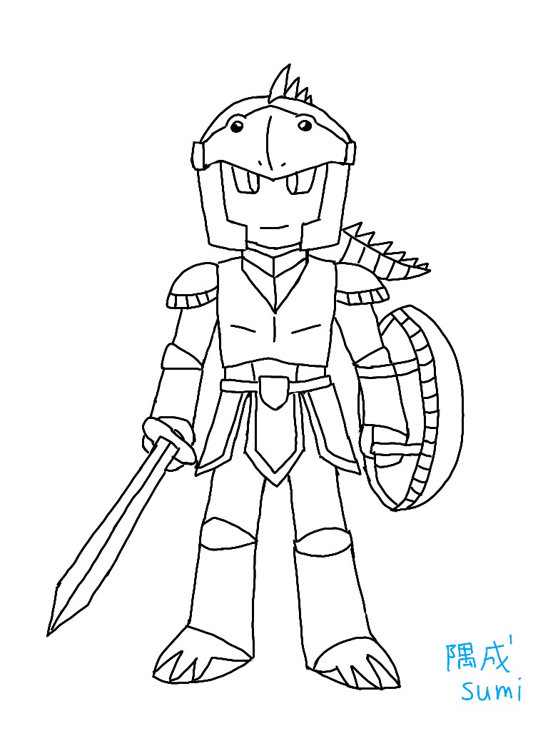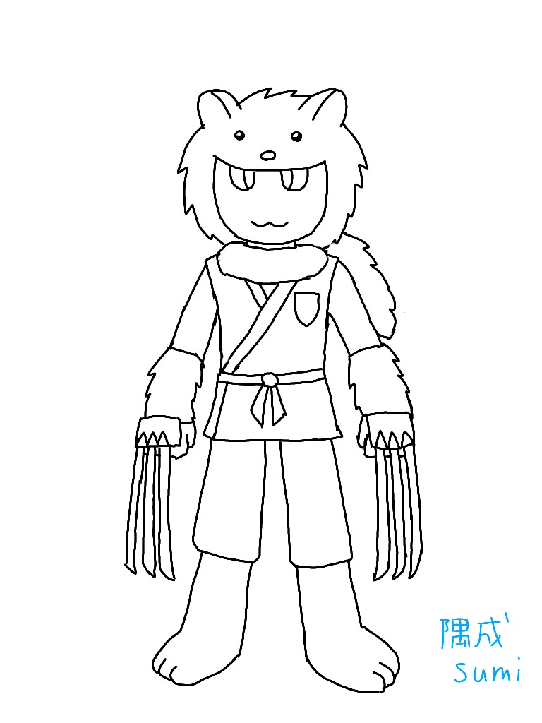 一方、創作キャラ(動物モチーフのRPG風人型戦士)の新しい立ち絵も少しずつ進めていった。まだ色塗りしてないので一応ぬり絵として使える画像。