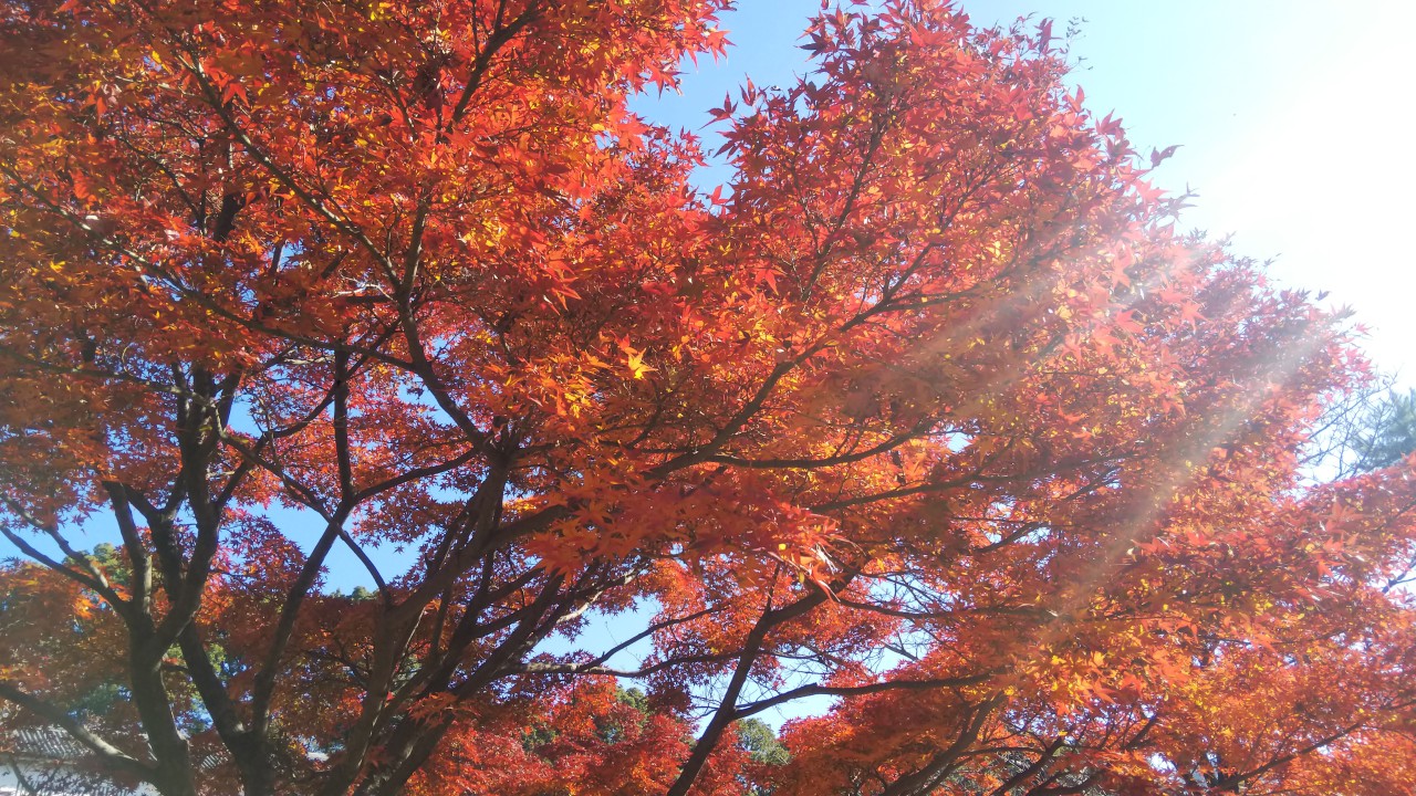 天気もよくて青空に紅葉が映えるね。
