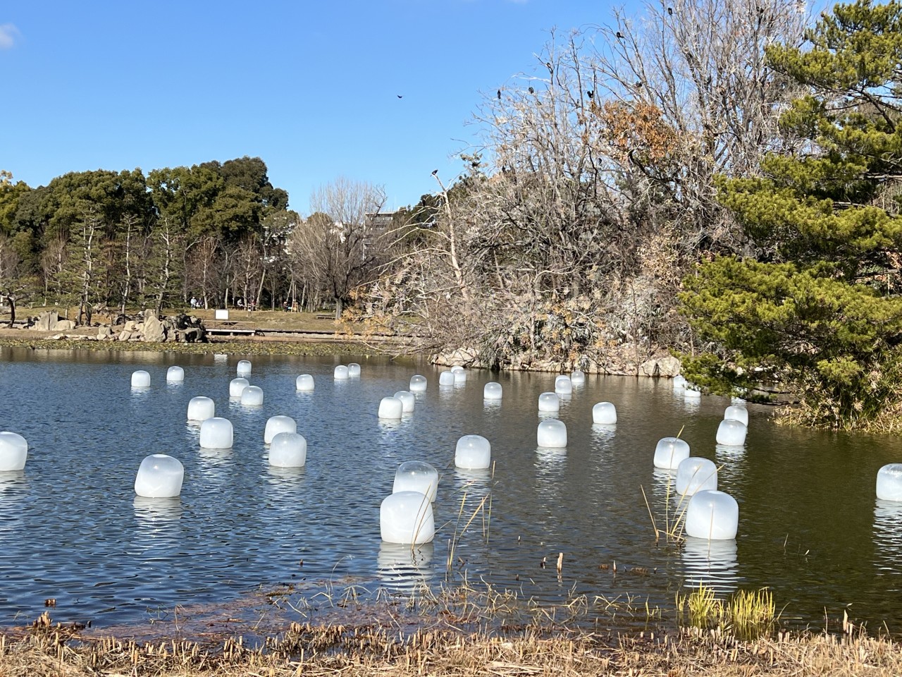園内散策している時、池に白いのがたくさん浮いてたり