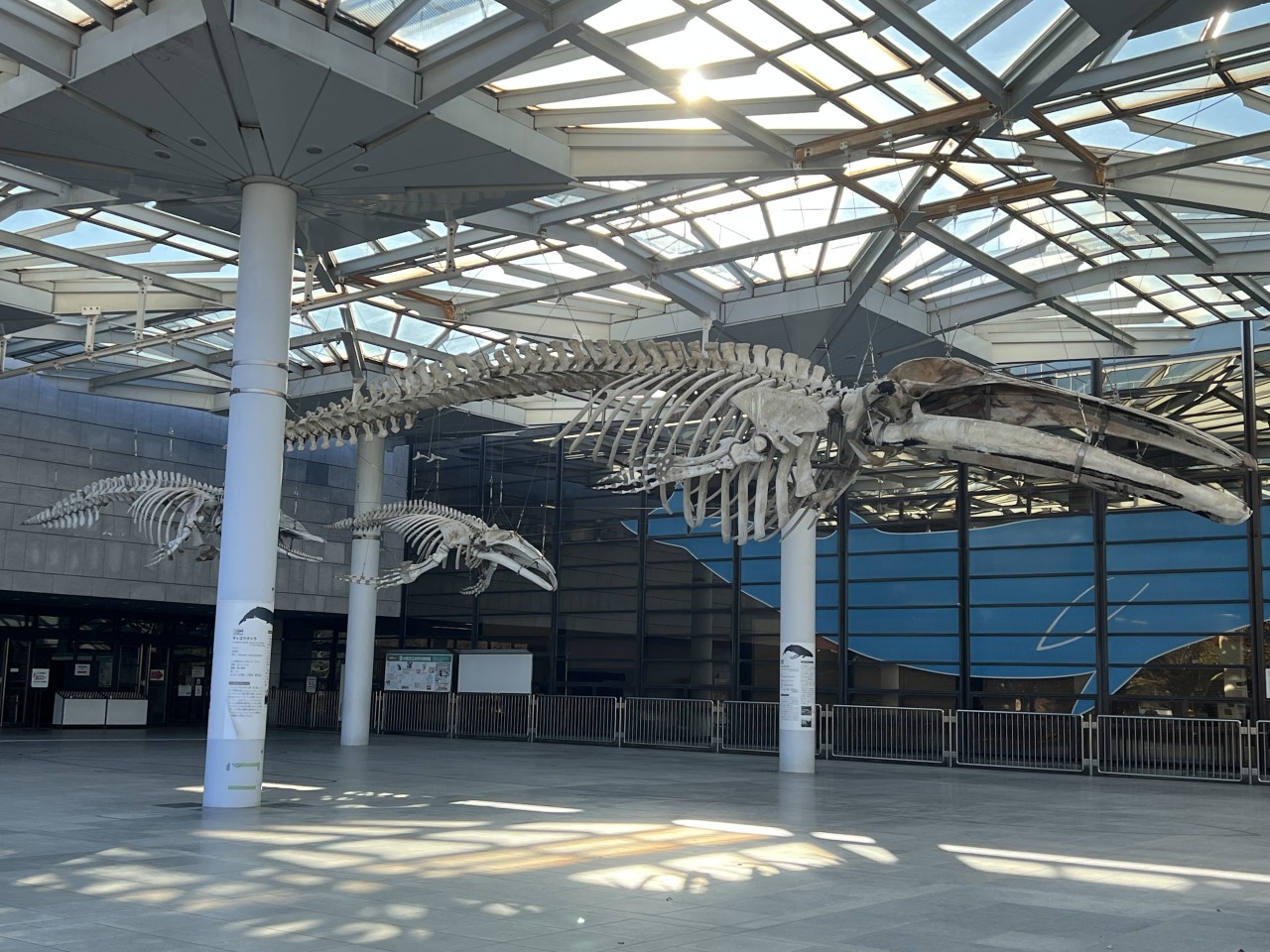博物館入り口の前にクジラたちの骨格標本! これが見たかった☺️
