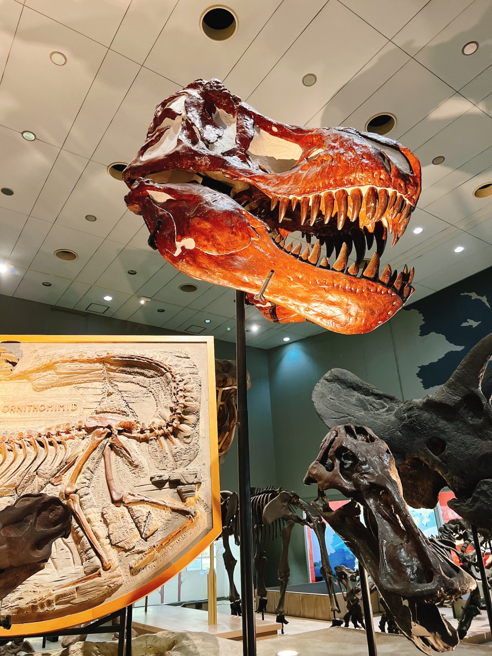 プテラノドンが天井から展示してあるのがいいですよね。