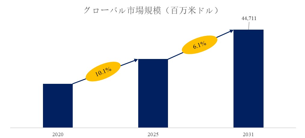 1.市場規模と予測:市場の過去データ(2020年~2024年)と将来予測(2031年まで)を提供し、市場全体の規模、成長予測、消費動向、需要動向を把握します。