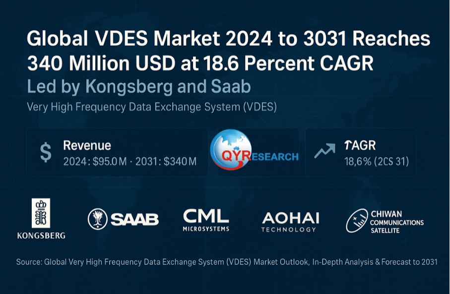 超高周波データ通信システム(VDES)— AISを大容量の地上・衛星データチャネルで拡張する第3世代海上通信規格—は試験運用から本格導入段階へ移行している。沿岸ネットワークのアップグレード、衛星コンステレーションの双方向性能実証、当局と船隊が大規模調達を可能にする枠組みを標準化団体が最終化することで、世界的な普及が加速している。QYResearchの「世界の超高周波データ通信システム(VDES)市場展望:詳細分析と2031年までの予測」によると、市場規模は2024年の9,500万米ドルから2031年までに340百万米ドルへ拡大し、2025年から2031年にかけて年平均成長率(CAGR)18.6%を達成すると予測されている。2024~2025年の成長の核となるのは、安全な電子航法メッセージング、VDE-SAT測距による耐障害性位置特定、そして外洋航路における連続的なカバレッジを可能にする沿岸・衛星統合サービスモデルである。
