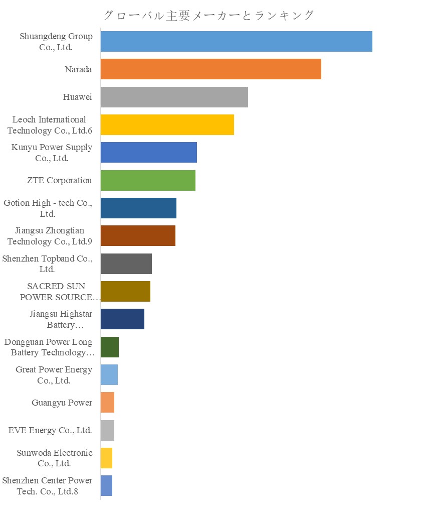 QYResearchのトップ企業研究センターによると、通信向け蓄電システムの世界的な主要製造業者には、Shuangdeng Group Co., Ltd.、 Narada、Huawei、Leoch International Technology Co., Ltd.6、Kunyu Power Supply Co., Ltd.、ZTE Corporation、Jiangsu Zhongtian Technology Co., Ltd.9、Gotion High - tech Co., Ltd.、Shenzhen Topband Co., Ltd.、SACRED SUN POWER SOURCE Co., Ltd.などが含まれている。2024年、世界のトップ10企業は売上の観点から約53.0%の市場シェアを持っていた。