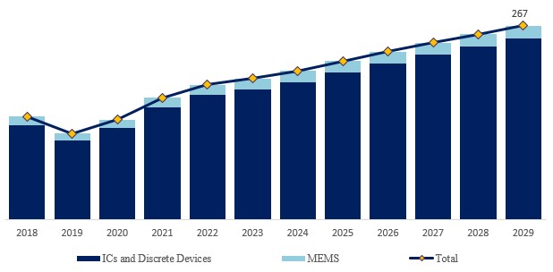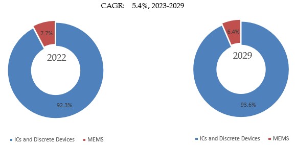製品用途別では、ICおよびディスクリートデバイスが最大の用途であり、2022年に92.3%のシェアを占めた。