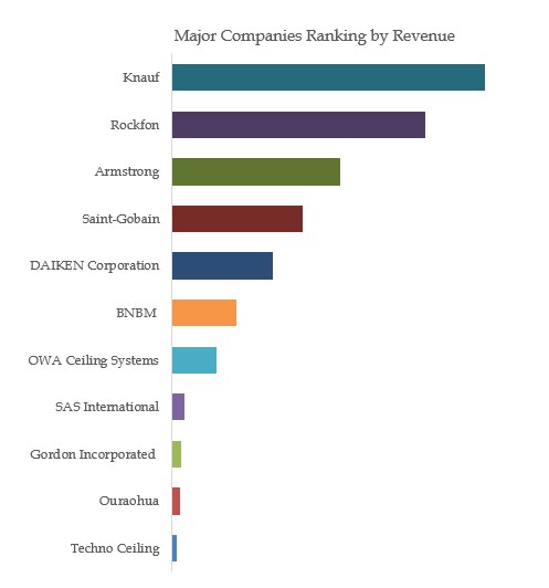 天井グリッドシステムの世界的な主要メーカーには、Knauf、Rockfon、アームストロング、サンゴバン、ダイケン株式会社、BNBM、OWA Ceiling Systems、SAS International、Gordon Incorporated、Ouraohua などがあります。2021 年、世界のトップ 10 社の収益シェアは約 25.0% でした。