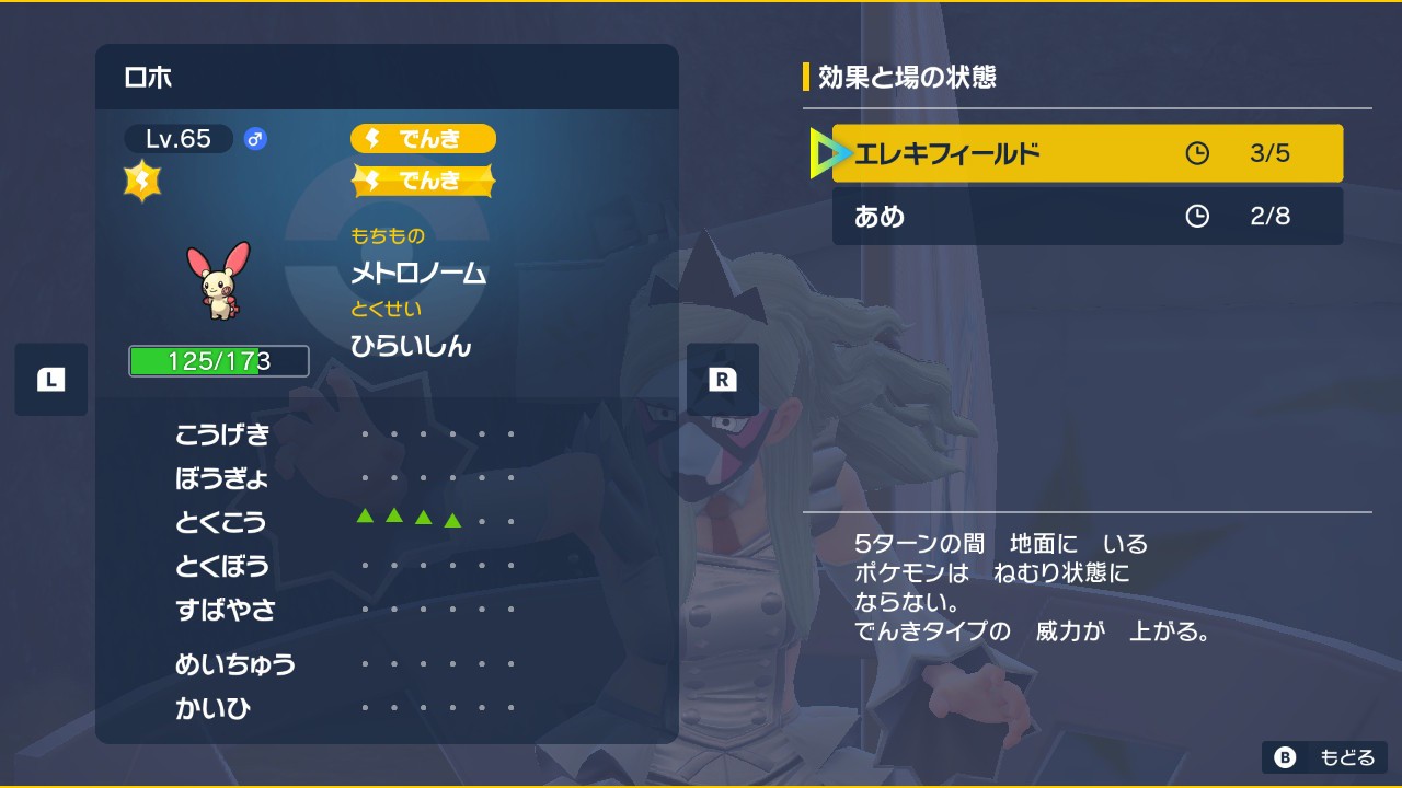 特攻4段階+メトロノーム+エレキフィールド+テラスタルのタイプ一致で過剰火力と化した必中雷でいざブロロローム