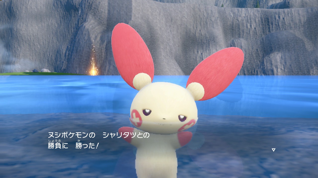 やむを得ないのでこちらで再度あまえる×3で攻撃面をズタズタにするけど、マイナンしめいわ持ちなので再度雨降らすまで居座り☔️