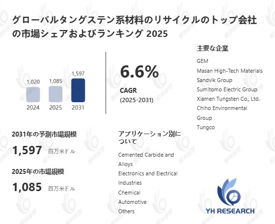 本記事は、YH Researchが発行したレポート 「グローバルタングステン系材料のリサイクルのトップ会社の市場シェアおよびランキング 2026」 を紹介しています。