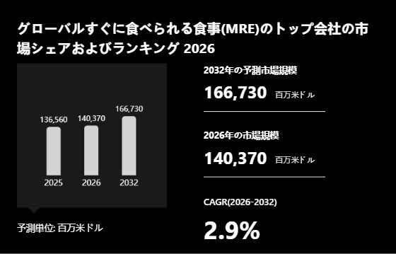 本記事は、YH Researchが発行したレポート 「グローバルすぐに食べられる食事(MRE)のトップ会社の市場シェアおよびランキング 2026」 を紹介しています。