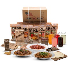 すぐに食べられる食事(MRE)は、軍隊およびその他の組織的サービスにおいて、戦闘や組織的な飲食施設が利用できない過酷な野外環境下で使用される、自己完結型の個人用携帯食である。MREは冷暗所での保管が推奨られるが、冷蔵の必要はない。各MREは「袋に入った完全食」として設計されており、通常約1,250カロリーを提供する。各パッケージにはメインディッシュ、副菜、クラッカーまたはパンとスプレッド、デザート、そしてフレームレス・レーション・ヒーター(FRH)が含まれる。この化学発熱装置により、兵士はキャンプファイアやストーブを必要とせずに温かい食事を摂取することが可能となり、隠密行動や生存任務において極めて効果的である。