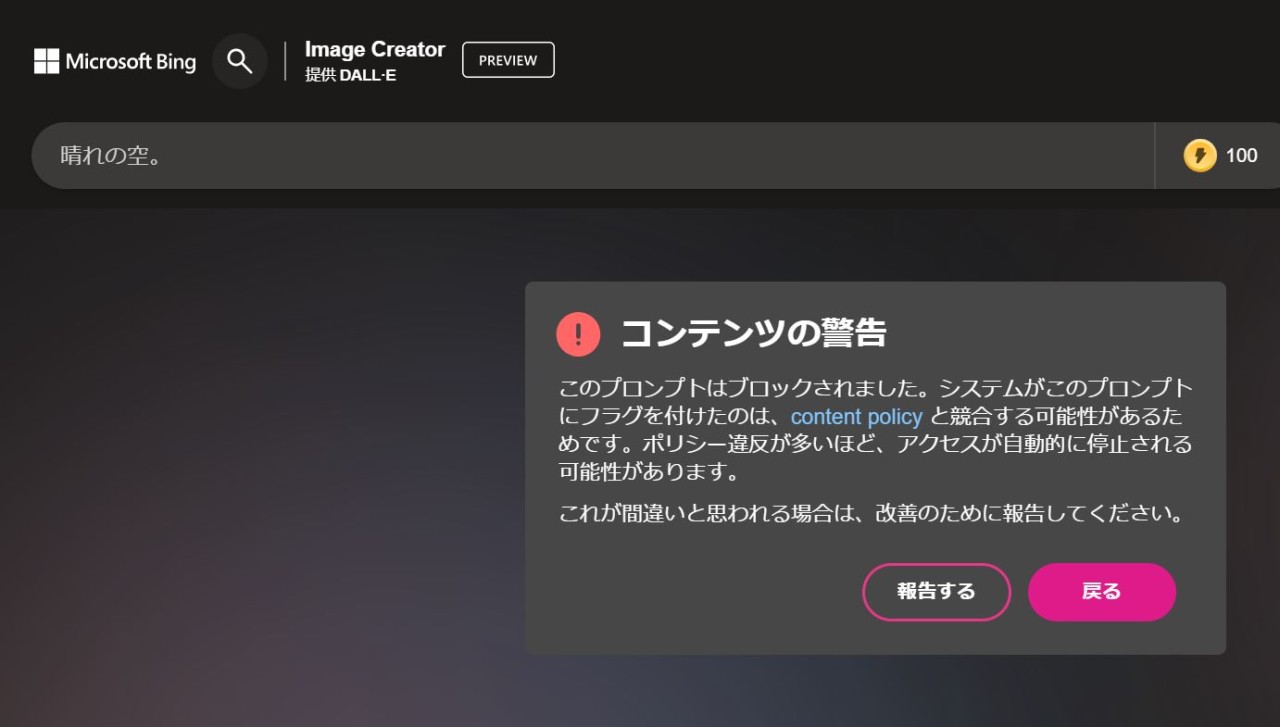 昨日ブロックかと思ったBingImageCreator。