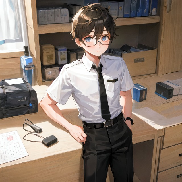 これは別のAI生成サービスで《メガネをかけたかわいい15歳の少年》を入れて生成した画像。似ていますね。というか同じです。つまり生成に使うプログラムは同じになります。