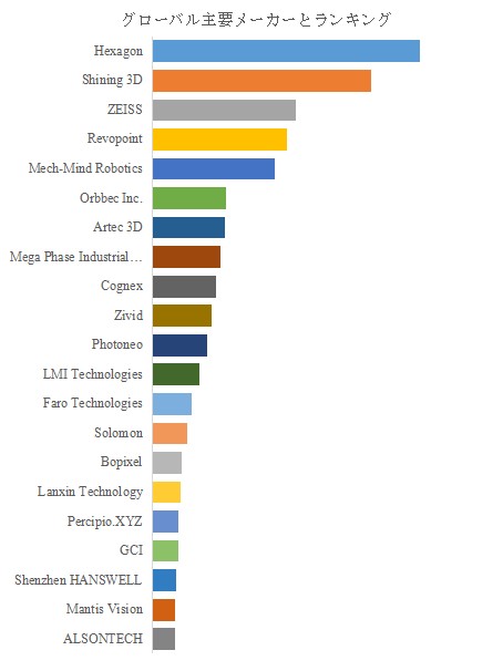 3D構造光工業用カメラ市場は、明確な技術階層とブランド認知によって形成されている。Hexagon、Shining 3D、ZEISSといった上位企業は、計測精度、信頼性、グローバル販売網を武器に幅広い産業分野で存在感を示している。Revopoint、Artec 3D、Faro Technologiesは、可搬性や使いやすさを強みとし、研究・設計用途で評価を高めている。Cognex、Photoneo、Zivid、LMI Technologiesなどは、ロボットビジョンやインライン検査向けに特化した製品群を展開し、システム統合力で差別化を図る。一方、中国系企業や新興プレイヤーは、コスト競争力とアプリケーション適応力を背景に市場浸透を進めている。本市場では単純なシェア拡大よりも、特定用途でのデファクト化が競争優位を決定づける構造が鮮明になっている。