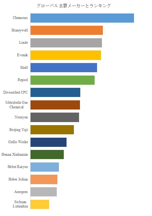 QYResearchのトップ企業研究センターによると、エアゾール噴射剤の世界的な主要製造業者には、Chemours、Honeywell、Linde、Evonik、Shell、Repsol、Diversified CPC、三菱ガス化学(Mitsubishi Gas Chemical)、Nouryon、Beijing Yujiが含まれ、2025年にトップ5は約39.0%、トップ10は約60.0%を占める。上位集中は進むが、用途別・地域別の最適解が異なるため、製品ポートフォリオと供給網の厚みが競争力の核になる。日本の視点では、三菱ガス化学がDMEなど関連領域でサステナビリティ認証を得る動きがみられ、原料・由来の管理が国際取引における競争条件になり得ることを示す。 一方、欧米大手は規制議論の中心地で制度変化と同時に商品設計を進める余地が大きく、ガス供給・化学素材の総合力が市場支配力へ直結しやすい。