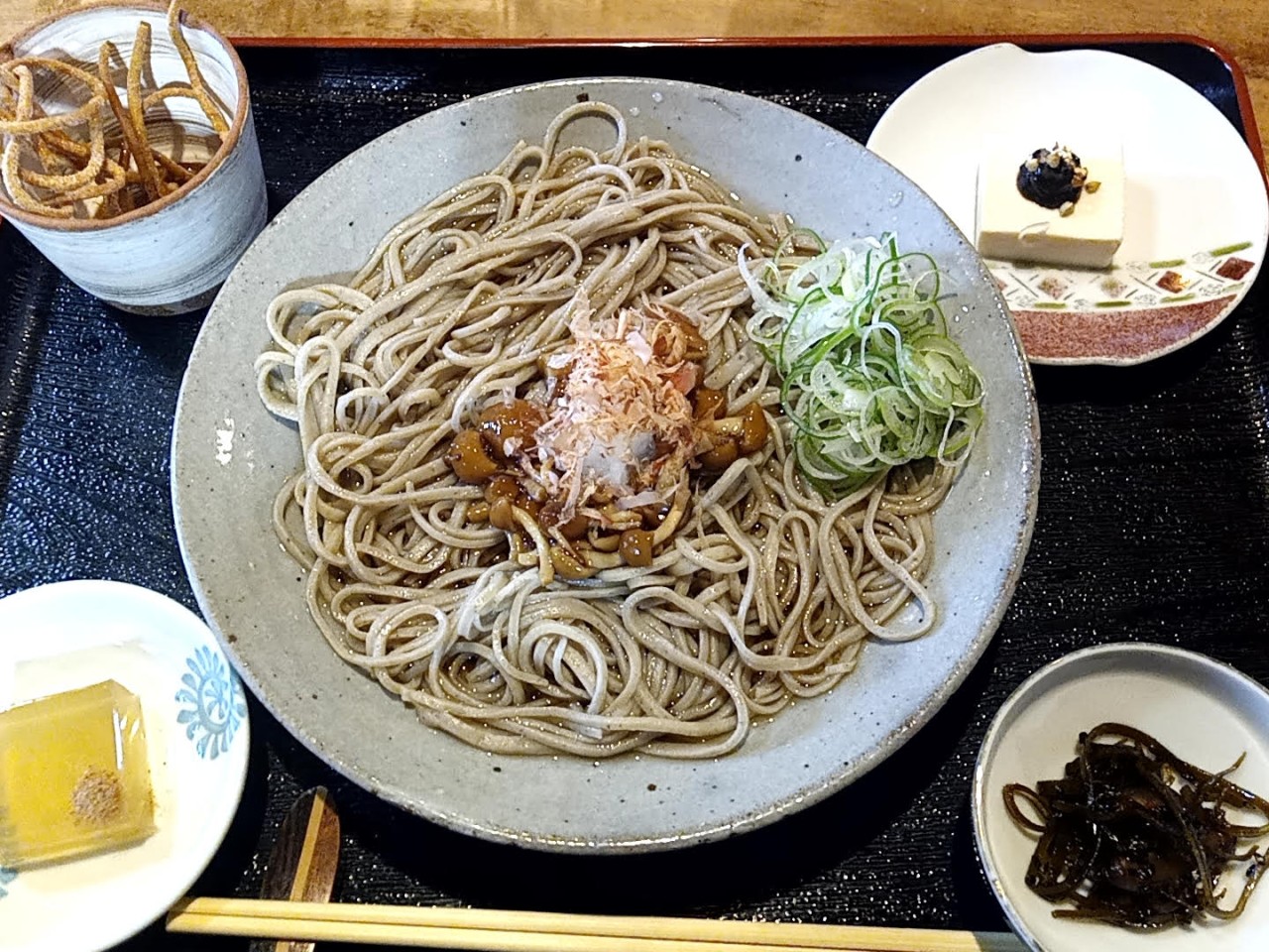 旧鳥越村にある『とりごえ蕎麦 相滝』に久しぶりに伺いました。この間も何度か来たことがあるのですが、人気店故にいつも満席でした。この日は雨模様という事もあり、無事に入店できました。注文はもちろん「とりごえ蕎麦御膳(1300円)」です。滋味あふれる素朴ないい味です。蕎麦を取り囲む小皿だけでビール1本いけそうです。