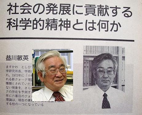 15年前ほど、益川氏の書いた一般向けの文章を ある雑誌で読んだことあります。それが冒頭の写真。カラーの顔写真は現在のものだけど、15年前は いかにも学者然とした 丸山真男的なカミソリのような風貌だったんだね。