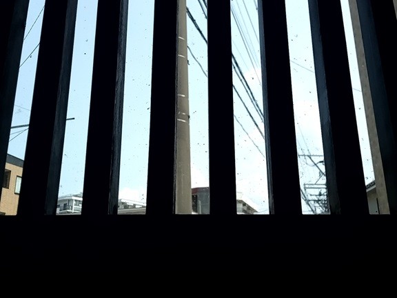 格子戸の中(うち)から空を見る