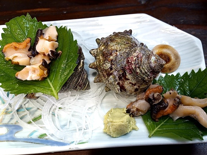 小生、子どもの頃からサザエ好きです。夏の夕食で、台所のガスコンロで壺焼きを焼くのは小生の担当でした。刺身はさすがに母親がしてましたが・・。しかし、飲食店の生簀ではなく、数時間前まで野生のままリアルの海にいた “生きたサザエ” の身を剥くのは、素人には至難の業で、我が家では金槌で殻を割って身を取り出してました。