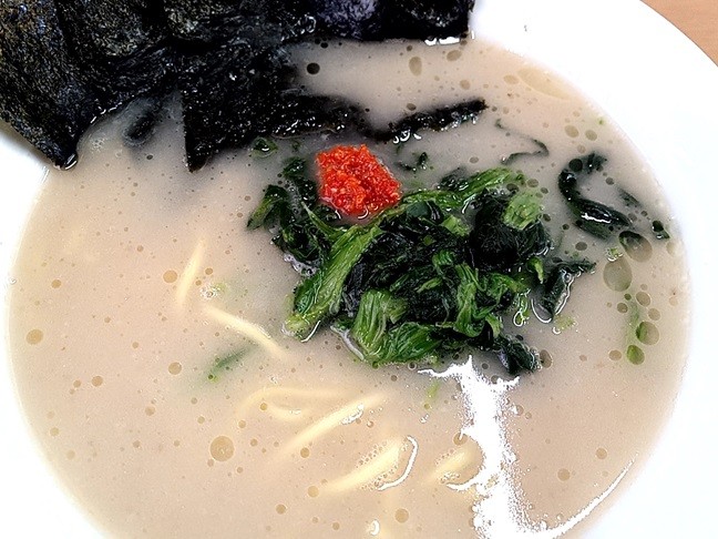 いままでここのラーメンの麺は「小サイズ=並(800円)」(麺量150g)をお願いしていたのですが、最近ますます食が細くなり、この日は麺半分の「半盛り(700円)」(同100g)をお願いしました。あっチャーシュー抜きでね。なので、店のスタッフに確認したわけではないけど、チャーシュー抜き代わりにほうれん草がかなり増量になってる模様。ありがたいことです。