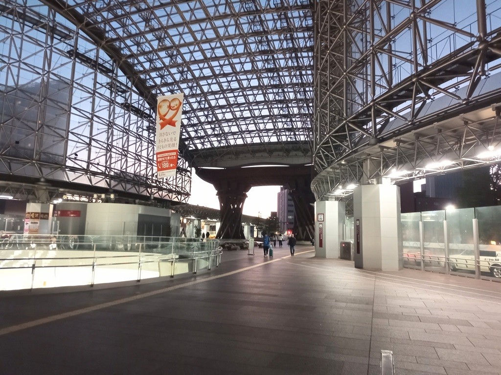 なので朝6時にタクシーを予約し、なんとか間に合うように駅に到着。この季節、まだ金沢は日の出前で、駅のガラスドームも仄暗い雰囲気。そう言えば、10年前くらいに、同じことがあったな。