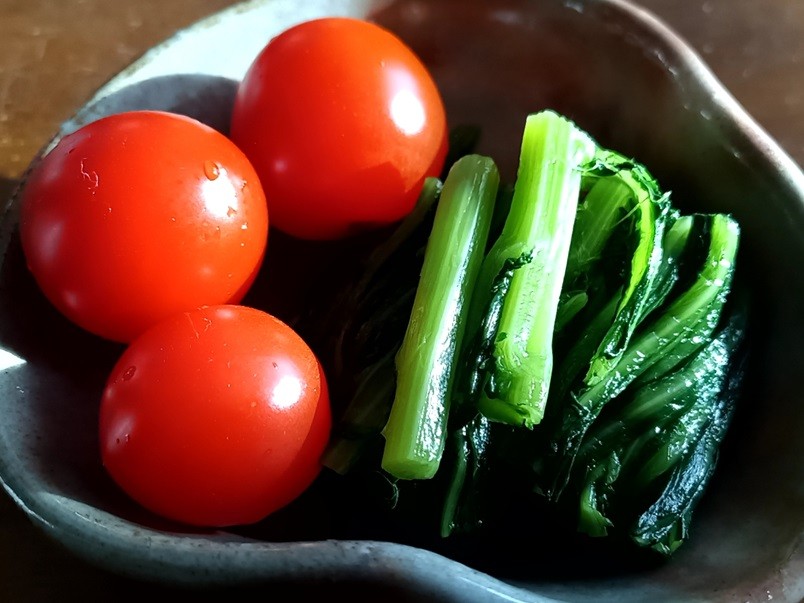 ⇊この日の副菜 トマトと春菊(ドレッシングなし)
