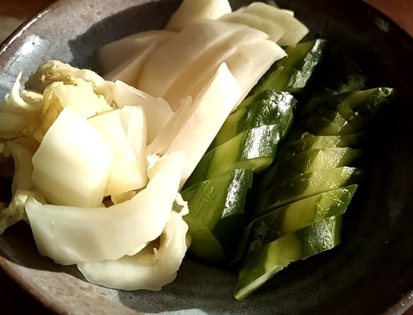 でも、齢も60歳代後半ともなると、揚げ物も、味の濃いいソースも敬遠するようになり、妙に糠漬けを好む様になりました。冒頭写真は、キュウリ、白菜、大根の糠漬けですが、これだけあれば、大ジョッキ2杯は行けますし、ドンブリ飯もペロリですね。