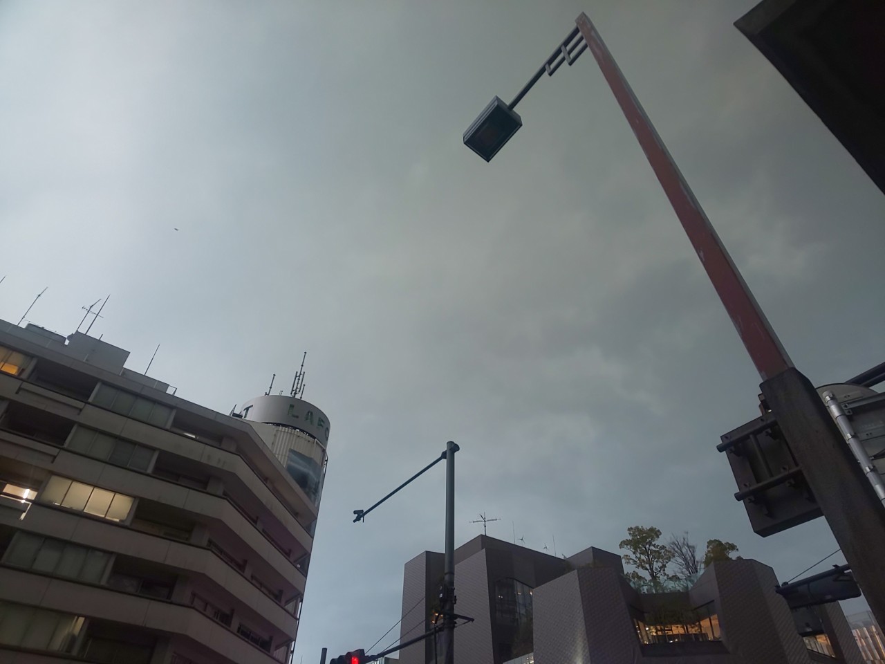 美容室終了後の原宿の空。このあと大粒の雪に襲われた。