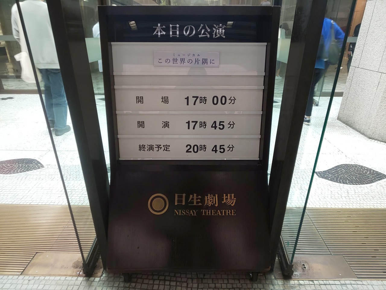 昨日から日生劇場で上演されている、ミュージカル「この世界の片隅に」を観てきた。