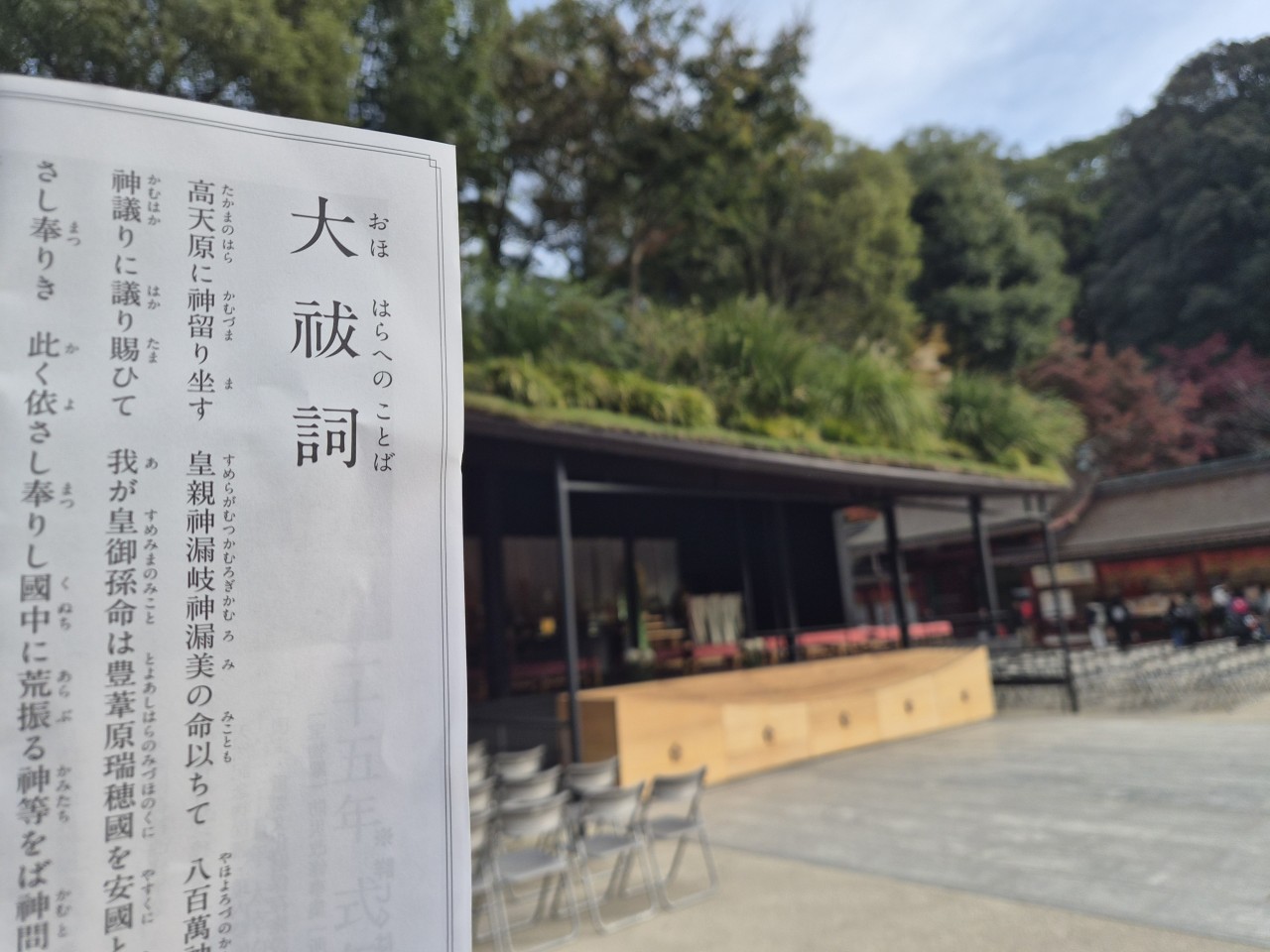 余談だが、朝拝のときに大祓詞が書かれた紙が配布され、参拝者もそれを読み上げるのだが、なかなかに難しい言葉が多くて、初見では読んでいる箇所を見失うレベルだったので、ちゃんと読み込んでまた朝拝に行ってみたいと思う。