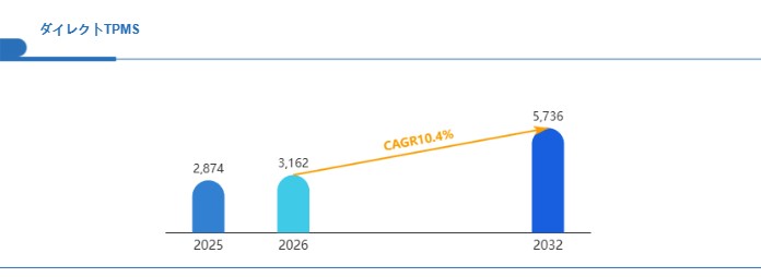 Global Reports調査チームの最新レポート「グローバルダイレクトTPMS市場規模、主要企業シェア、ランキング分析レポート【2026年版】」によると、2026年の3162百万米ドルから2032年には5736百万米ドルに成長し、2026年から2032年の間にCAGRは10.4%になると予測されています。