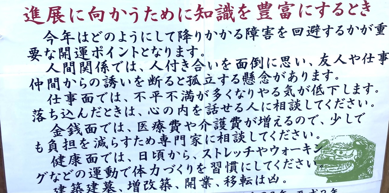 神社に張り出してあった八白土星の運勢だそうです。