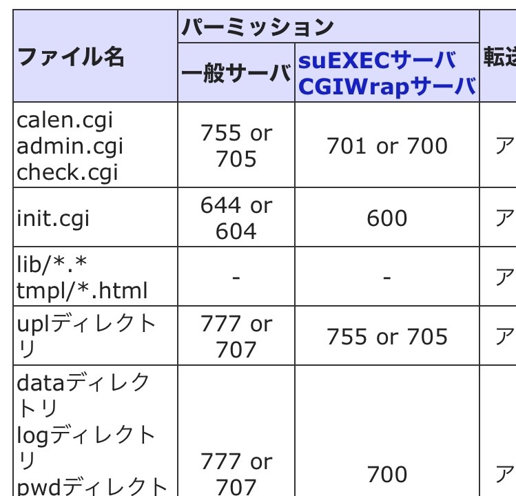 サーバーにアップロードしたときに各ファイルの属性の変更をします。アクセス権の設定です。他の人も見たり書き込みできるように