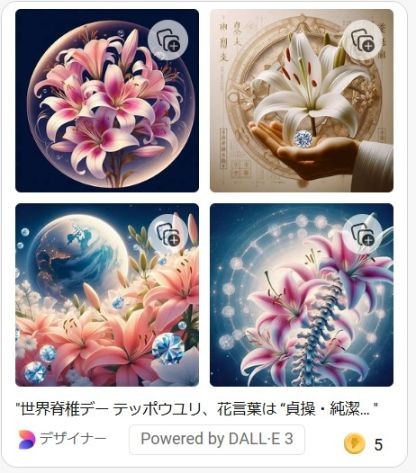 世界脊椎デーを祝うには、この絵を大切にして飾ろうと思う。AIが描いたとはいえ、その美しさには人間の手が加わっているからだ。技術の進化と共に、美しいものが生まれるということを改めて感じた。脊椎を象徴としたこの作品は、私にとって特別な存在となることだろう。世界脊椎デーを迎えるにあたり、未来への希望と感謝の気持ちが胸に満ちている。この絵を通じて、脊椎の健康と生命の尊さを心に留めて、日々を大切に生きていきたいと思う。