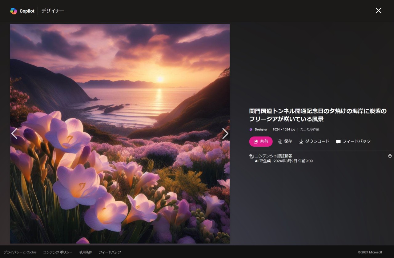 生成AIが作品を完成させると、画面には私が提供した写真を元にした美しい絵が描かれていた。