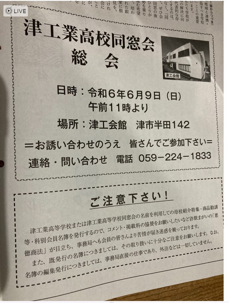 その後、会報誌に総会の案内が掲載されました。