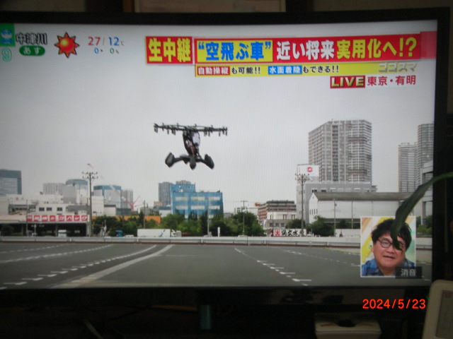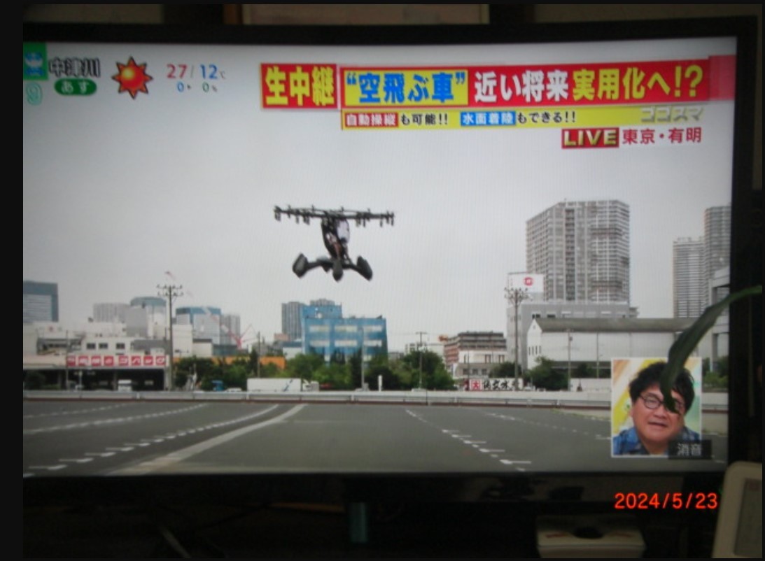 今日はテレビで空飛ぶ車の実況中継を見た。高さ10~20メートルをふわりと飛ぶその様子は、なんだか未来を感じさせるものだった。