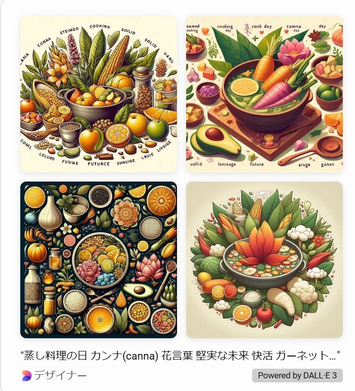 朝からAIのDesignerに描いてもらったイラストが完成した。顔色の良い野菜が蒸気を上げる蒸籠の中で、賑やかな雰囲気を醸し出している。思ったよりもリアルで、驚いた。料理の中にもAIの力が入っていくのかと思うと、ちょっと不思議な気持ちだ。