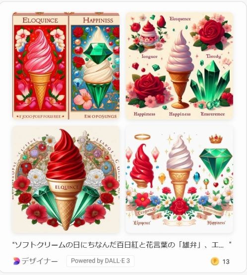 今日はソフトクリームの日だった。そんな日に、AIのDesignerに描いてもらった絵を見せられた。すずしさより、艶やかな色合いが目を引いた。
