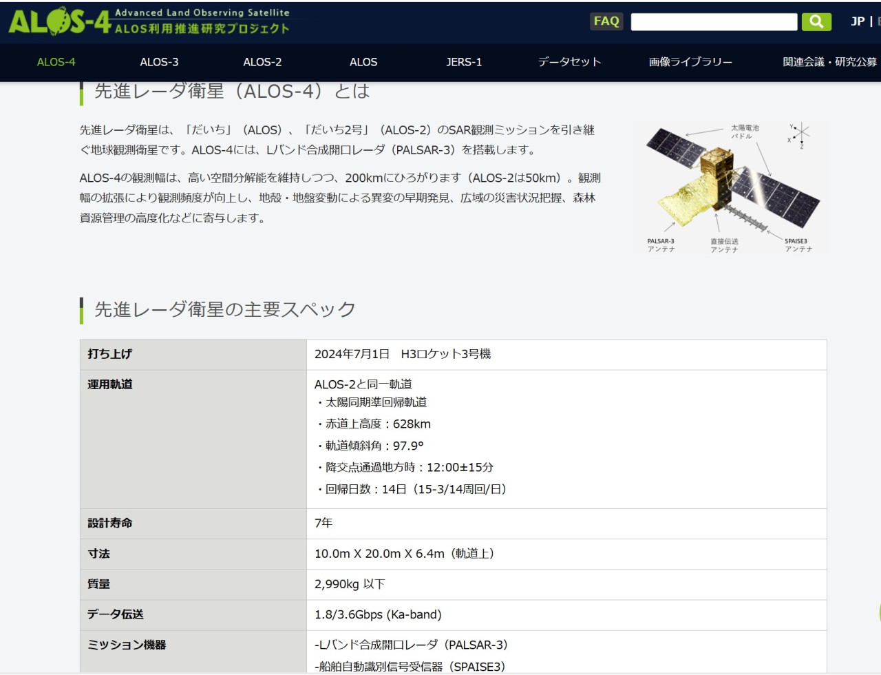 先進レーダー衛星だいち4号の打ち上げが楽しみだ。