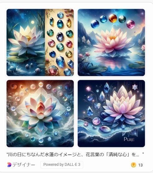 帰宅後、AIのDesignerにその写真を渡して、花の回りに宝石を散りばめた絵を描いてもらいました。