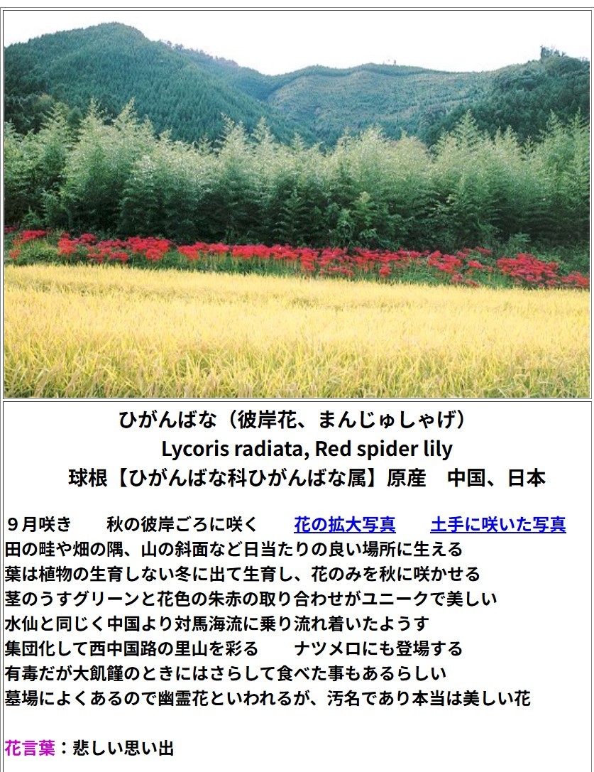 さらに、彼岸花のことを思い出した。ヒガンバナは、その情熱的な赤色が印象的だ。この花には“情熱”という花言葉がある。秋の訪れを告げる彼岸花が咲くころ、なんとなく心がざわつくのは、この情熱的な色合いのせいかもしれない。どこか切なさを感じる美しさがあり、見るたびに心が揺さぶられる。自然の中で生きる彼岸花の存在が、私の感情に火を灯す瞬間がある。