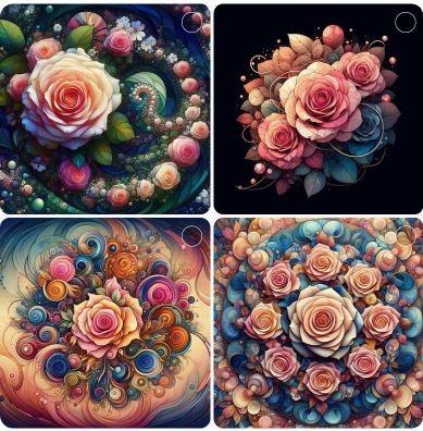 AIが描く絵は想像以上に華やかで、見ているだけで心が弾む。色彩が鮮やかで、まるで花畑にいるような気分になる。特に、蔓薔薇のつるばらが描かれていた部分が印象的だった。花言葉は“さわやかな二人”というから、どこか親しみやすい雰囲気を醸し出している。
