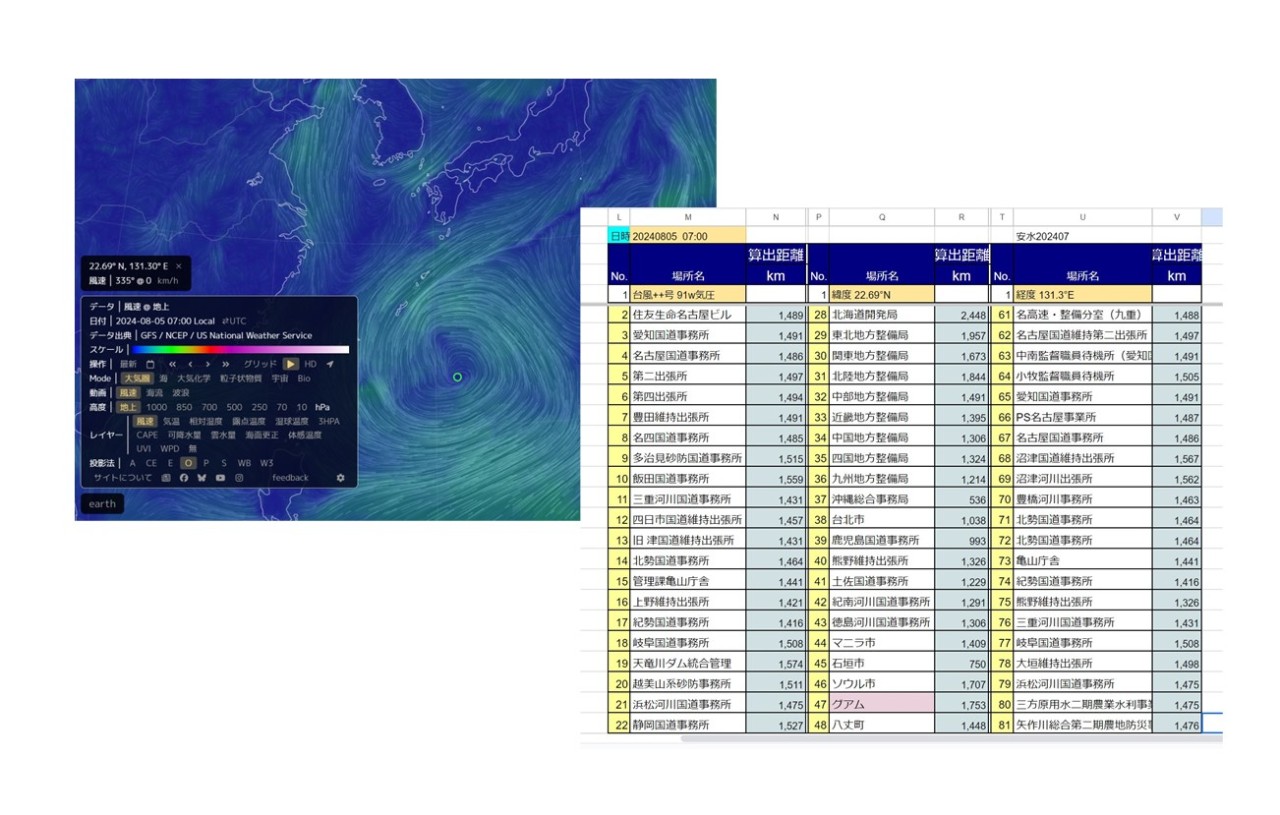 それぞれの都市と熱帯低気圧との距離を見比べると、なんだか現実とつながりを感じる。