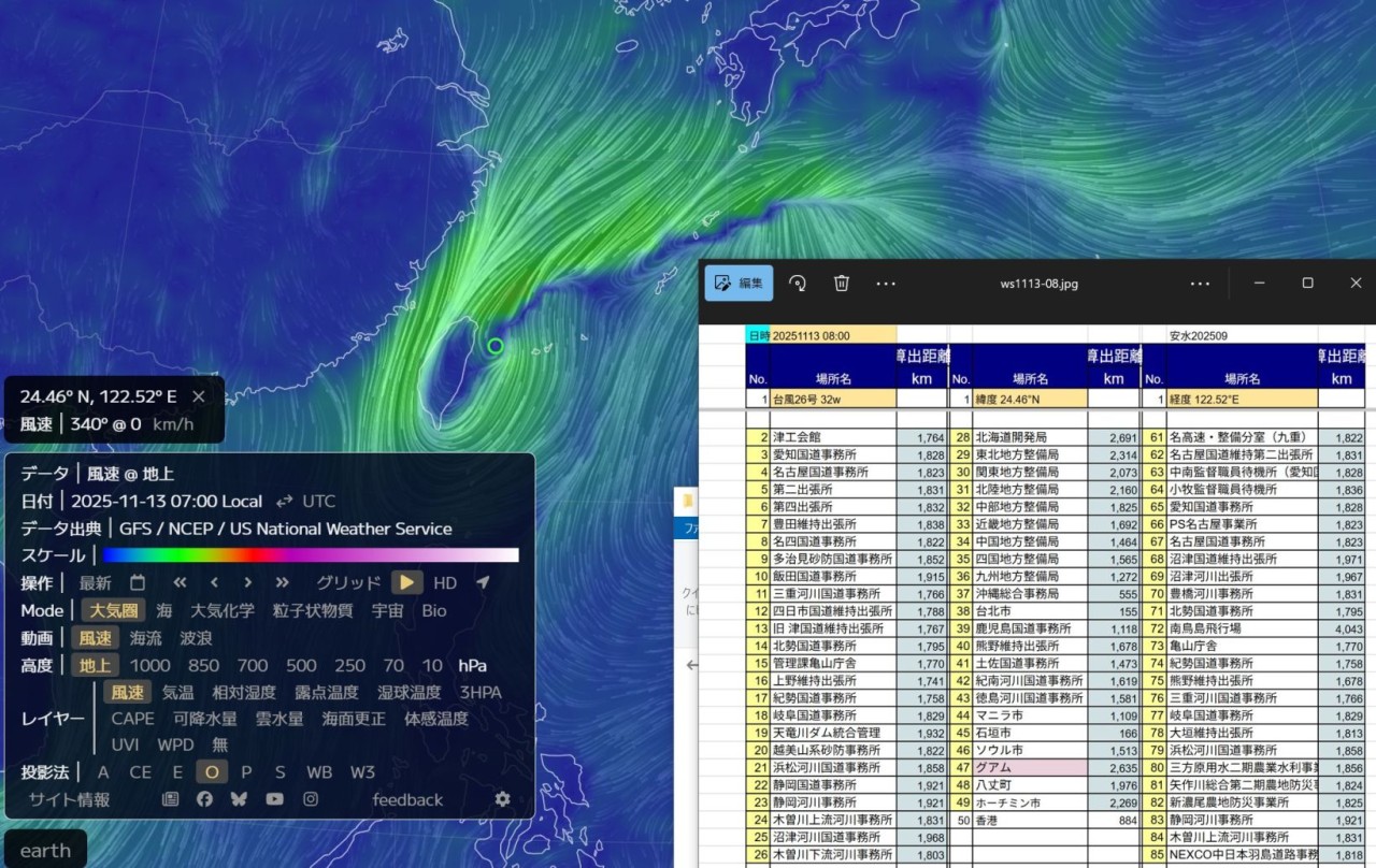 台風1号接近予想 令和 8年 1月19日3時米軍予報から計算 http://dob.web2.jp/2015/topics/img/3564-1.jpg