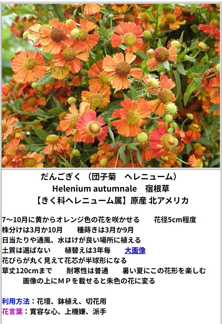 その後、ふと目にしたへレニウムの花。花言葉は「理想の恋」と「派手」とのこと。確かにこの花は鮮やかな色合いで、周囲を明るく照らしている。静けさの中に派手さが共存する様子が、不思議な調和を生んでいるように思えた。