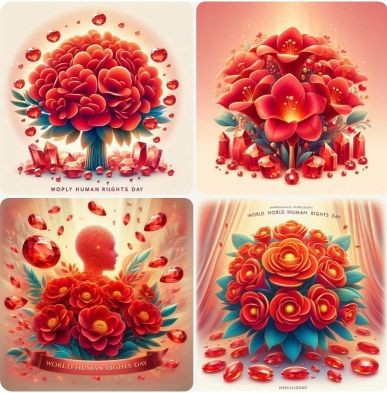 AIが描いたその絵は、派手な色使いが特徴的だった。その色彩の中には、様々なメッセージが込められているように感じた。特に、目を引いたのはレッドボロニアの花。この花の花言葉は "印象的" とされている。やはり、この世界人権デーにふさわしいモチーフだと思った。人権を巡る問題は、私たちに強烈な印象を与えるものであり、一人一人がその重要性を理解する必要がある。
