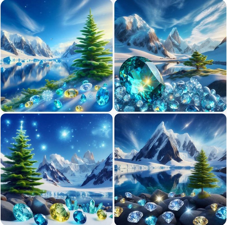 南極のような青の世界がどんな風に表現されるのか楽しみだった。AIが生み出した作品は、まさに幻想的だった。氷の美しさや、その静けさが画面いっぱいに広がっていて、見るたびに新たな発見がある。