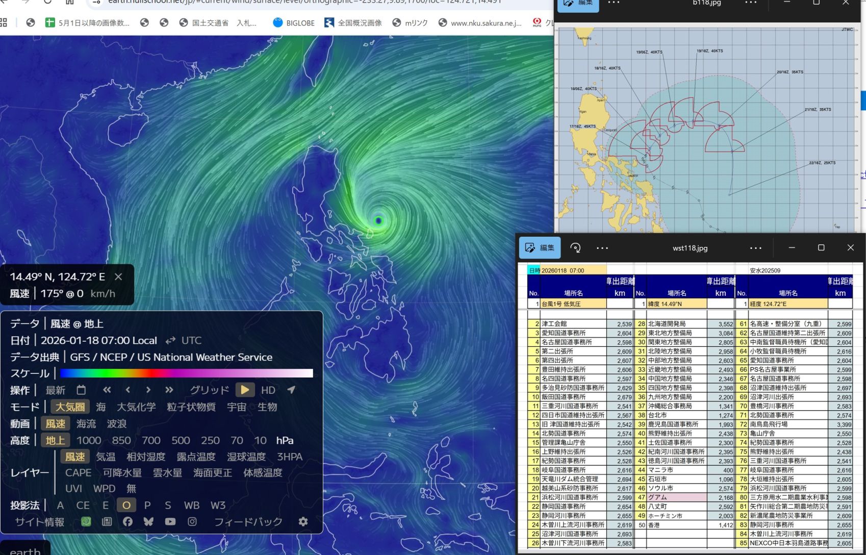 各地の台風接近予報 台風1号 令和 8年 1月16日3時米軍予報から計算 http://dob.web2.jp/2015/topics/img/3561-1.jpg