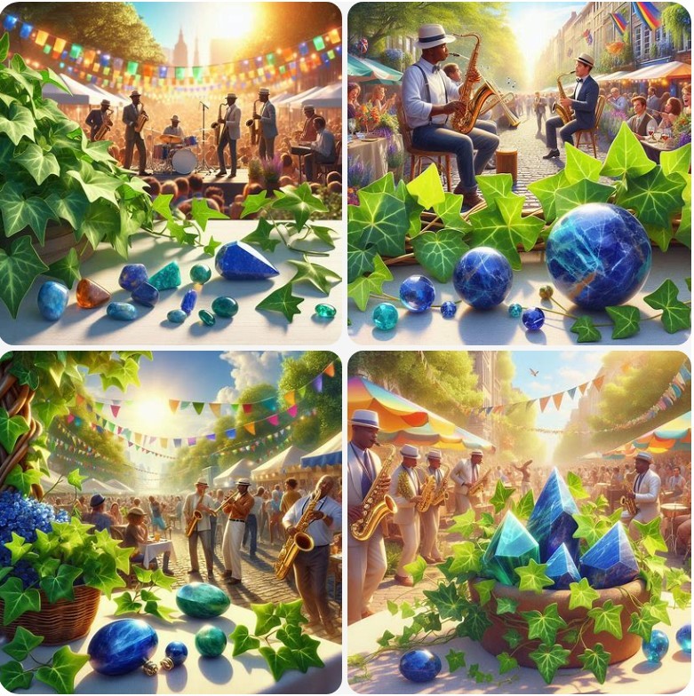 描かれた絵には、ジャズミュージシャンたちが集まるカフェと、その周りで楽しむ観客が描かれていた。楽器を手にした人々の表情が生き生きとしていて、まるでその場にいるかのようだった。色鮮やかな背景が、ジャズのリズムと雰囲気を見事に表現していた。